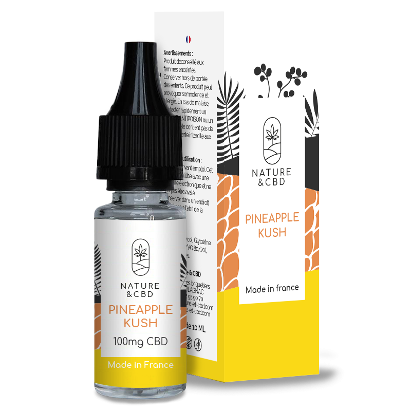 Le Pineapple Kush Nature & CBD se présente dans une fiole de 10 ml accompagnée d’un étui cartonné.